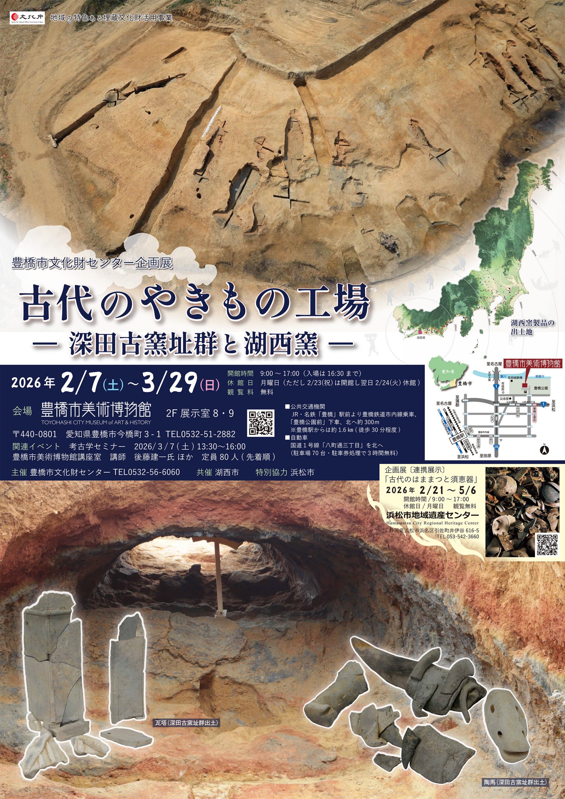 近年調査され大きな成果を上げた豊橋市・深田古窯と湖西市・古見古窯及び谷上古窯を紹介するとともに、湖西窯とは何か、その実態を広く紹介します。 ●会期:2月7日(土)~3月29日(日) ●観覧料:無料
