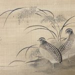 キジ科で一番小さい鳥であるウズラは、古くから人間と関わりの深い鳥です。日本では草深い場所にたくさんウズラが生息していたことから、ウズラと深草を合わせた歌が多く詠まれました。中国では安らかさを表す吉兆のシンボルとされ、多くの鶉図が描かれました。鶉図は日本にも持ち込まれ、粟の穂など秋の草花と合わせた画題が好まれました。また、鳴き声が「御吉兆」と聞こえることから縁起の良い鳥とされました。