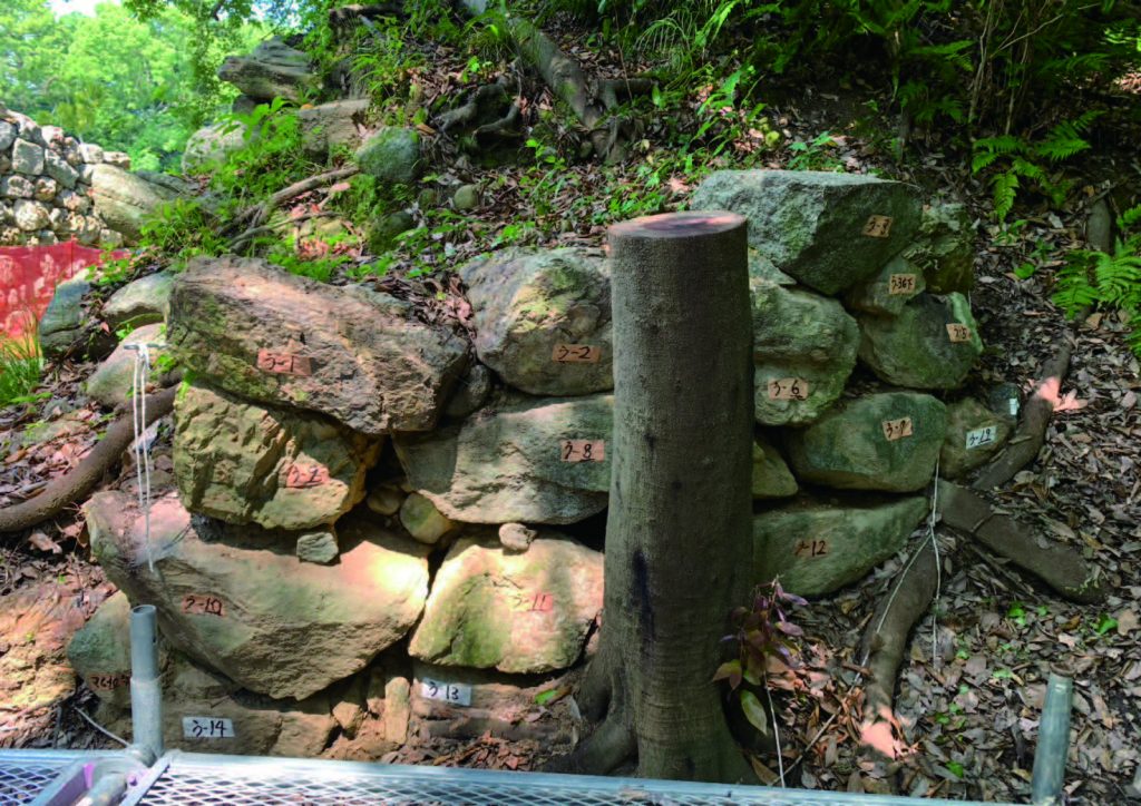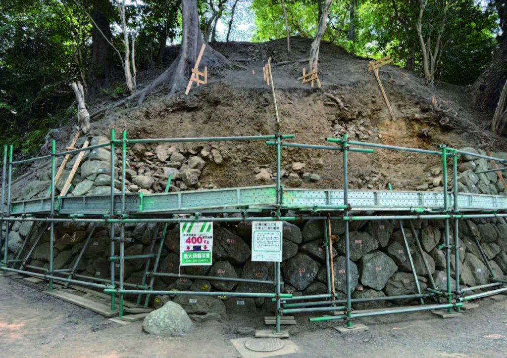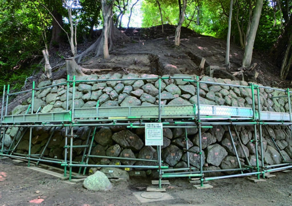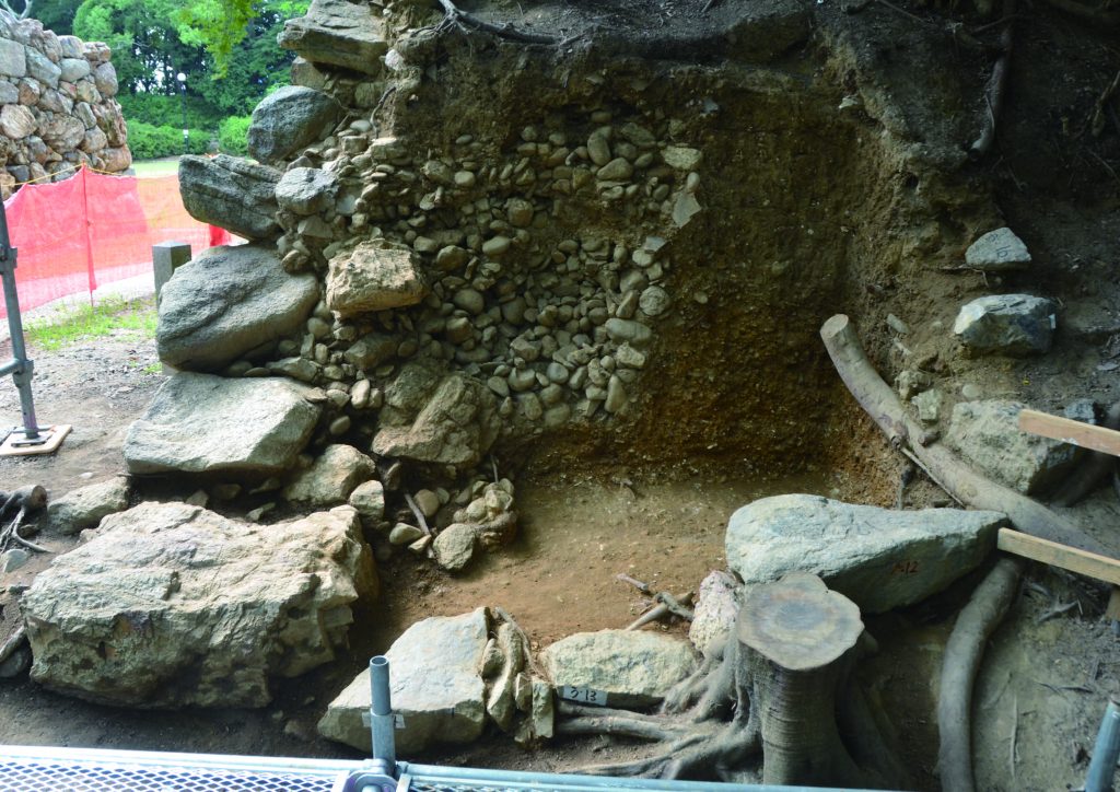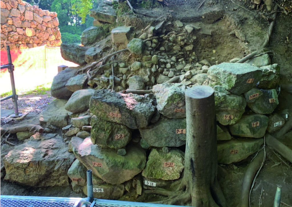 今回は、本丸北東隅石垣では大きな孕みが、裏門北側石垣東面では大きな前傾が見られたため、解体修理を行うことになりました。解体と並行して実施した発掘調査成果を、現地説明会資料よりご覧ください。